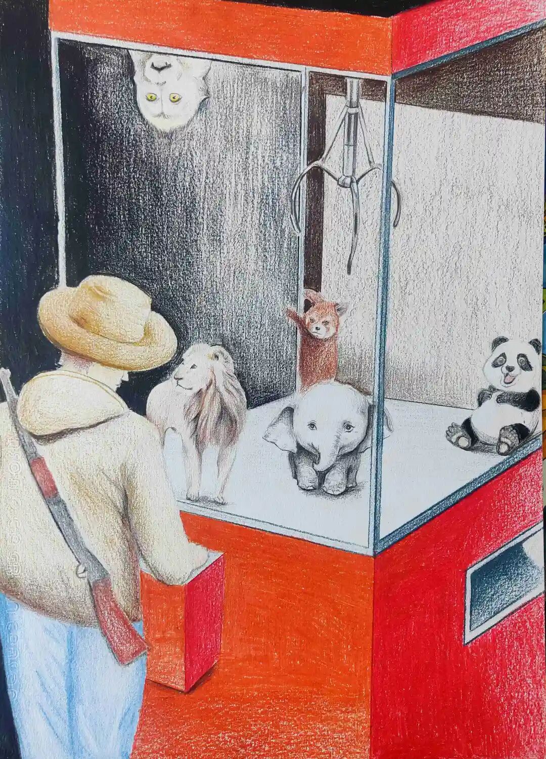 Description: The animals, with timid or bewildered expressions, silently protest the harm that “entertainment” and “possession” inflict on natural life. They belong to the vast wilderness and forests, not to be “trophies” for human amusement. True protection means returning freedom to every life.
